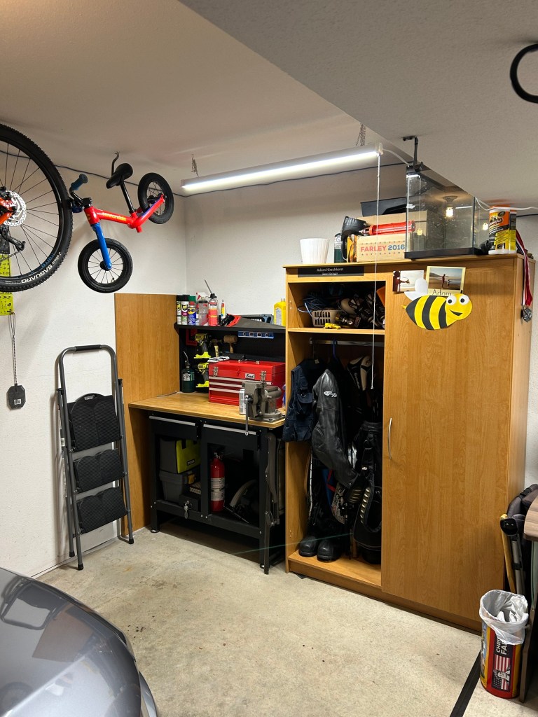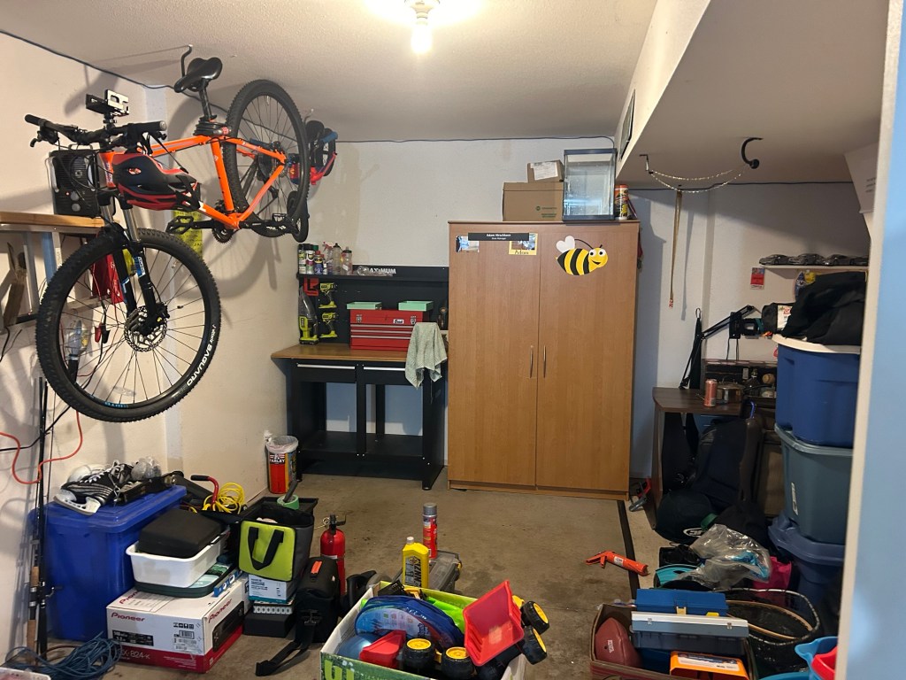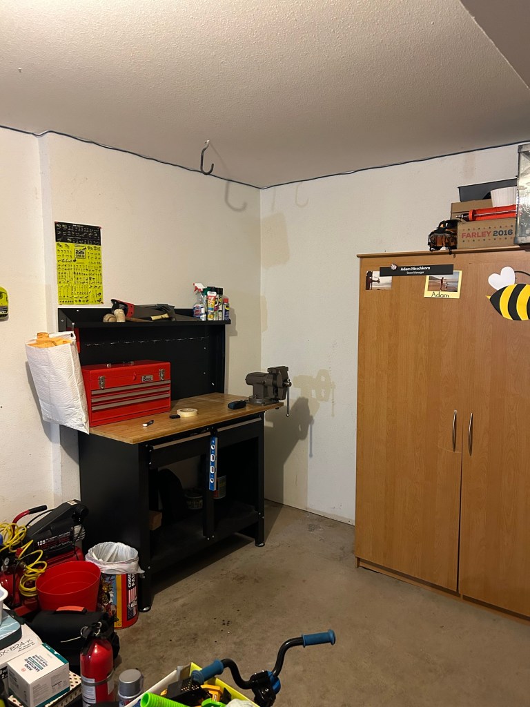 Below is my work / weed bench. In the corner is a bunch of shit that hasn’t been properly dealt, same as the storage cabinet and above. I was using the space but I was just half ass using it and not taking care of it.